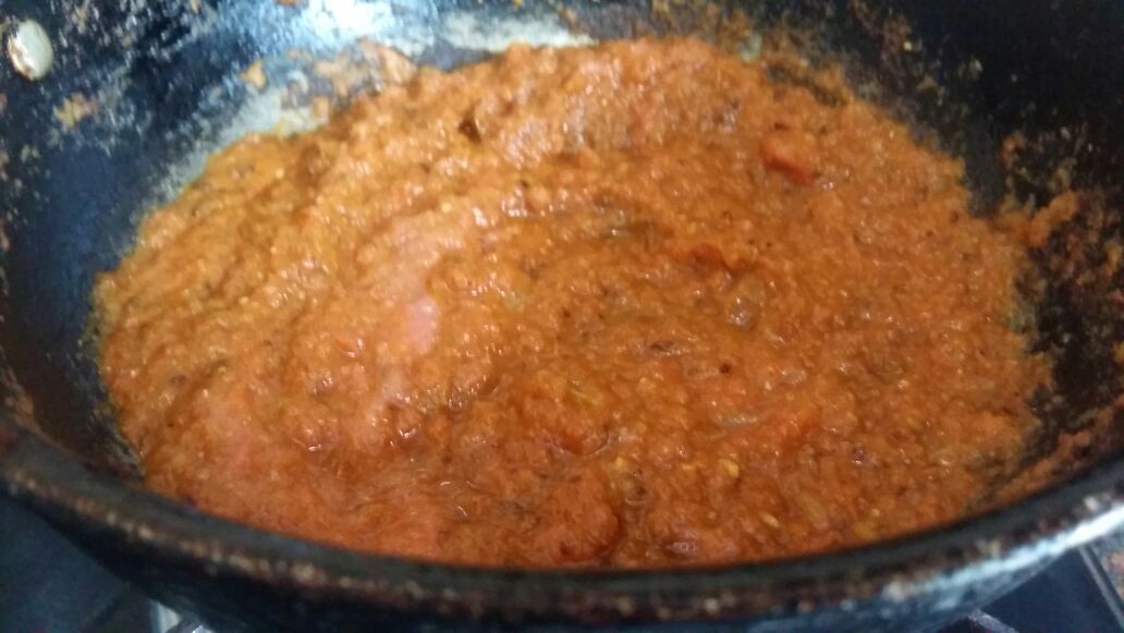 - Add ginger garlic paste and turn it golden brown, now add onion puree nad cook till the oil seperates.